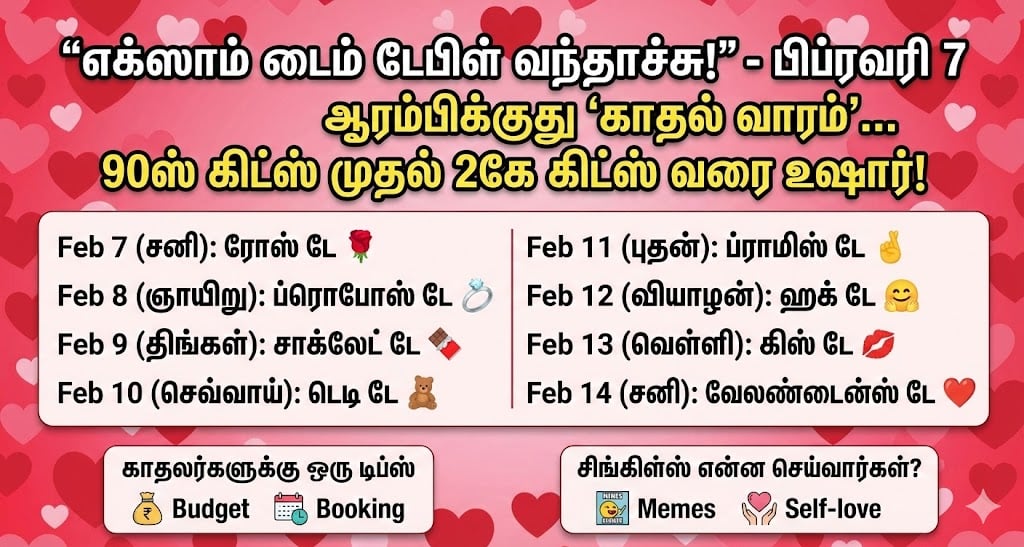 ரெண்டு கிட்னியையும் விற்க வச்சுருவான் போல : அப்டேட் குமாரு “எக்ஸாம் டைம் டேபிள் வந்தாச்சு!” – பிப்ரவரி 7 ஆரம்பிக்குது ‘காதல் வாரம்’… 90ஸ் கிட்ஸ் முதல் 2கே கிட்ஸ் வரை உஷார்! அமெரிக்கா நடத்திய போரில் அடிபணிந்த மோடி : அமைச்சர் ரகுபதி அரசியல் More அமெரிக்கா நடத்திய போரில் அடிபணிந்த மோடி : அமைச்சர் ரகுபதி தமிழ் பிச்சை எடுக்க உதவாது… திருடவும் உதவாது : ராஜ்யசபாவில் காட்டமாக பேசிய கமல் ’துரோகி’ என விமர்சித்த ராகுல்.. மத்திய அமைச்சர் தந்த பதிலடி! சீக்கியர்கள் கொந்தளிப்பு- வைரல் வீடியோ ஊடகவியலாளர்கள் மீதான தாக்குதல் : எம்எல்ஏ பழனியாண்டி மீது வழக்குப் பதிவு செய்ய விஜய் வலியுறுத்தல் தமிழ்நாட்டின் மீது பாஜகவிற்கு அவ்வளவு வெறுப்பு- முதல்வர் ஸ்டாலின் குற்றச்சாட்டு துணைவேந்தர் நியமன வழக்கு : சென்னை உயர் நீதிமன்றம் விதித்த தடை ரத்து – உச்சநீதிமன்றம் அதிரடி அனில் அம்பானி வழக்கில் இவ்வளவு தாமதமா? சிபிஐ, eDக்கு உச்ச நீதிமன்றம் அதிரடி உத்தரவு! அம்மாவின் ஆன்மா யாரை துரத்துகிறது பார்த்தீர்களா? – எடப்பாடி விளக்கம் SIR வழக்கு.. உச்சநீதிமன்றத்தில் ‘மாஸ்’ காட்டிய மமதா.. மாநில மக்களுக்காக நீதி கேட்டு.. உருக்கமான வாதம்! சமூகம் More காலேஜ் போகாமலேயே டிகிரி வாங்கலாம்! தமிழ்நாடு திறந்தநிலை பல்கலைக்கழகத்தில் (TNOU) அட்மிஷன் ஓபன்… மிஸ் பண்ணிடாதீங்க பாஸ்! கல்வியின் வரலாறாக வாழ்ந்த எஸ்.எஸ்.ஆர் : யார் இந்த மாமனிதர்? மத்திய அரசு ஊழியர்களுக்கு அகவிலைப்படி ரெடி: விரைவில் நல்ல செய்தி! 30 நாட்களுக்குள் CIBIL ஸ்கோரை ஒரே அடியாக உயர்த்தலாம்: இந்த டிரிக்கை ஃபாலோ பண்ணுங்க! அனில் அம்பானி வழக்கில் இவ்வளவு தாமதமா? சிபிஐ, eDக்கு உச்ச நீதிமன்றம் அதிரடி உத்தரவு! தென் தமிழகம் மற்றும் டெல்டா மாவட்டங்களில் மழை – வானிலை ஆய்வு மையம் தகவல் பணம் More கொச்சி கப்பல் கட்டும் (Cochin Shipyard) தளத்தில் வேலை! 300+ காலிப்பணியிடங்கள்… மாதம் 80 ஆயிரம் வரை சம்பளம்! 30 நாட்களுக்குள் CIBIL ஸ்கோரை ஒரே அடியாக உயர்த்தலாம்: இந்த டிரிக்கை ஃபாலோ பண்ணுங்க! தாட்கோவில் (tahdco) இலவச ஏஐ பயிற்சி! சாப்பாடு, தங்குமிடம் ஃப்ரீ… கைநிறைய சம்பளத்தோட வேலை உறுதி! மிஸ் பண்ணிடாதீங்க பாஸ்! வீடு கட்ட வங்கியில் கடன் வாங்கினால் எவ்வளவு EMI கட்டணும்? கணக்கீட்டை இங்கே பார்க்கலாம்! சென்னை ஐஐடியில் (IIT Madras) படிக்க ஒரு ‘ஜாக்பாட்’ சான்ஸ்! 6000 ரூபாய் ஸ்டைபண்ட்… சாப்பாடும் ஃப்ரீ! மிஸ் பண்ணிடாதீங்க பாஸ்! கடும் விலை வீழ்ச்சியில் வெள்ளி விலை (Silver Price): உன்னிப்பாக கவனிக்கும் முதலீட்டாளர்கள்! Part Time Job என்ற பெயரில் நடக்கும் மோசடி: நீங்கள் சிக்காமல் இருக்க என்ன செய்ய வேண்டும்? யுஜிசி (UGC) நெட் ரிசல்ட் எப்போ? என்டிஏ கொடுத்த மாஸ் அப்டேட்! பிப்ரவரி 4-க்குள்ள ‘ஜாக்பாட்’ ரிச
