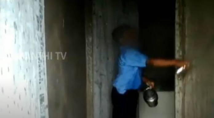 கர்நாடக மாநிலம் பெல்காவி மாவட்டத்தில் ஷிரதன கிராஸ் பகுதியில் உள்ள அரசு ஆரம்ப பள்ளியில் ஆசிரியர்கள் பயன்படுத்தும் கழிவறையை மாணவர்கள் 2 பேர் சுத்தம் செய்துள்ளனர்.