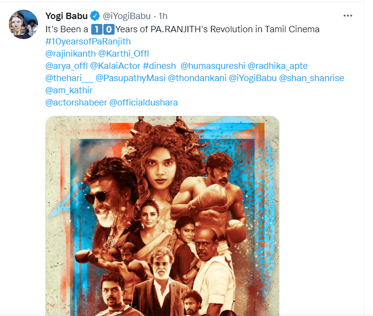 அட்டக்கத்தி என்ற திரைப்படத்தின் மூலமாக 2012 இல் தமிழ் சினிமாவிற்கு அறிமுகமானவர் இயக்குனர் பா.ரஞ்சித். அவர் சினிமாவிற்கு வந்து 10 வருடங்கள் ஆனதைத் தொடர்ந்து #10 YearsofPaRanjith என்ற ஹேஷ்டேக் ட்விட்டரில் ட்ரெண்டாகி வருகிறது.