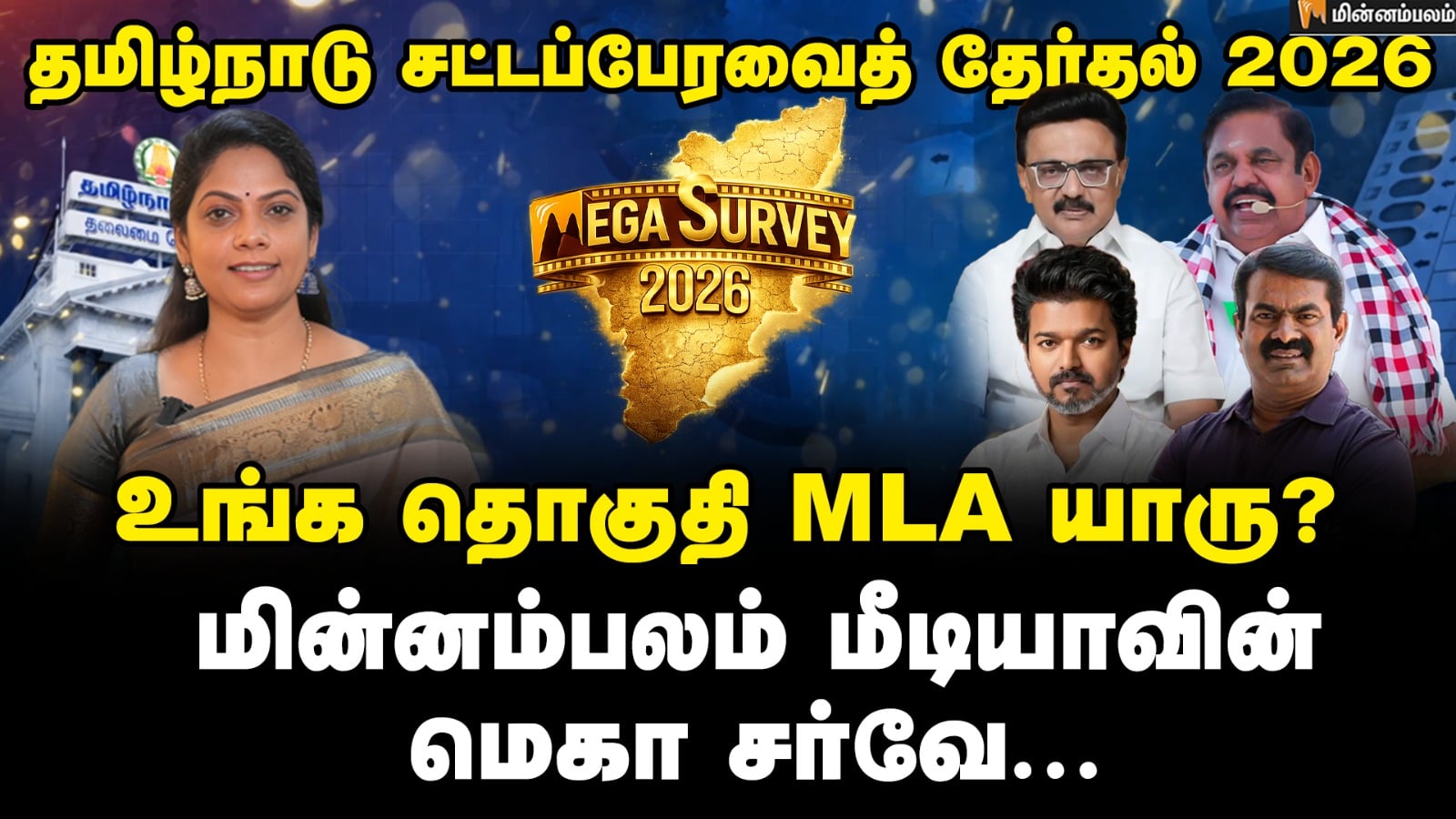 தமிழக சட்டசபை தேர்தல் 2026 முடிவுகள் எப்படி இருக்கும்? தமிழ்நாடு முழுவதும் 234 தொகுதிகளில் நமது மின்னம்பலம் மீடியா நடத்திய மெகா சர்வே முடிவுகள் மின்னம்பலம் யூ டியூப் சேனலில் இன்று முதல் தொடர்ச்சியாக வெளியாகிறது.