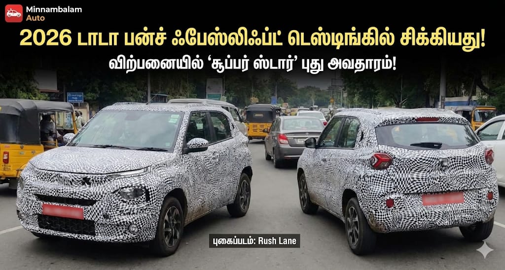 இந்திய கார் சந்தையில் “மைக்ரோ எஸ்.யு.வி” (Micro SUV) என்ற ஒரு புதிய செக்மென்ட்டை உருவாக்கி, அதில் ராஜாவாக வலம் வருவது டாடா பன்ச் (Tata Punch). டாடா மோட்டார்ஸ் நிறுவனத்தின் விற்பனையில் ஒரு ‘ராக் ஸ்டாராக’த் திகழும் இந்த கார், அறிமுகமான நாளில் இருந்து இதுவரை பெரிய அளவில் வடிவமைப்பு மாற்றங்களைச் சந்திக்கவில்லை. இந்நிலையில், வாடிக்கையாளர்கள் நீண்ட நாட்களாக எதிர்பார்த்த அந்தச் செய்தி இப்போது வெளியாகியுள்ளது. 2026-ம் ஆண்டு வரவிருக்கும் புதிய ‘டாடா பன்ச் ஃபேஸ்லிஃப்ட்’ (Tata Punch Facelift), சாலைகளில் சோதனை ஓட்டத்தின்போது (Spied Testing) கேமராவில் சிக்கியுள்ளது!