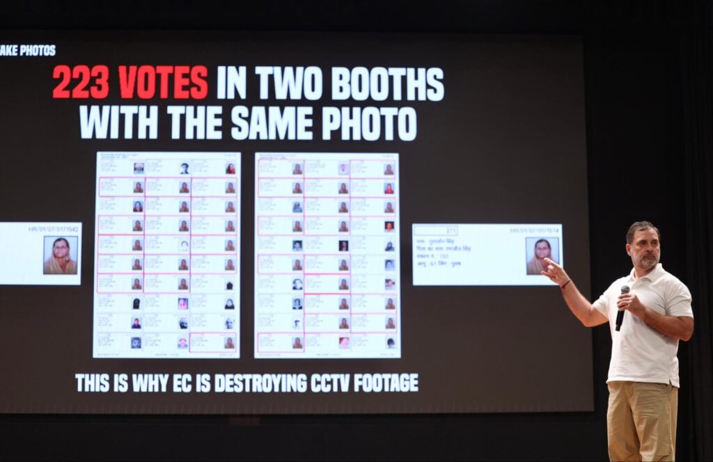 ராகுல் காந்தி தனது செய்தியாளர் சந்திப்பில், ஹரியானா சட்டமன்றத் தேர்தலில் நடந்த வாக்குத் திருட்டு முறைகேடுகளை விரிவாக எடுத்துரைத்தார். அவர் சுட்டிக்காட்டிய முக்கிய அம்சங்கள்: