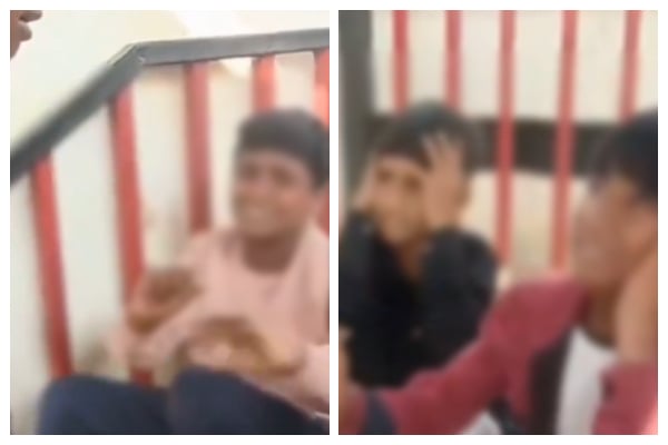 சமூக வலைத் தளங்களில் இன்று (டிசம்பர் 6) வெளியாகி வைரலாகியுள்ள காணொளியில், படிக்கட்டில் உட்கார்ந்திருக்கும் மூன்று சிறுவர்களை ஒரு இளைஞர் செருப்பால் அடித்து ‘ஜெய் ஸ்ரீ ராம்’ சொல்லு என்கிறார்.