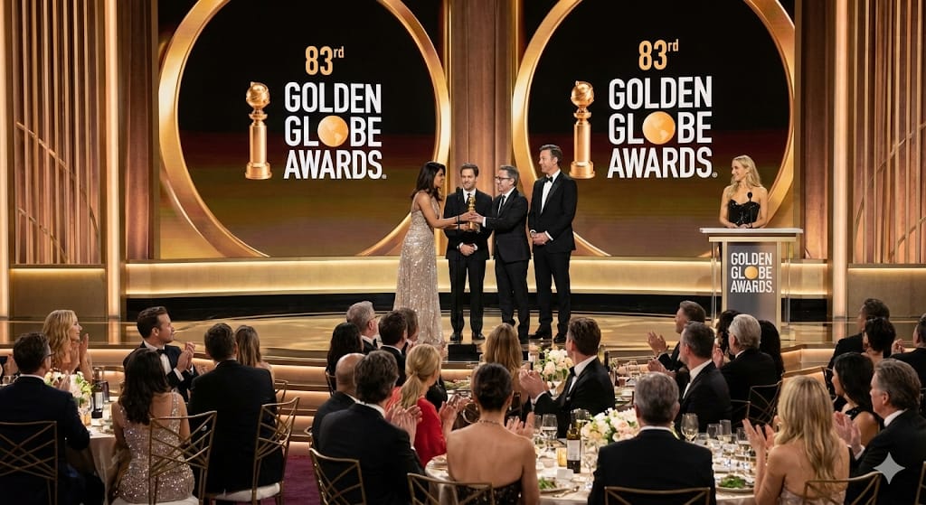 ஹாலிவுட் விருதுகளின் திருவிழாவான 83-வது கோல்டன் குளோப் விருதுகள் (83rd Golden Globe Awards) வழங்கும் விழா, கலிஃபோர்னியாவில் உள்ள பெவர்லி ஹில்ஸில் இன்று கோலாகலமாக நடைபெற்றது. கடந்த ஆண்டு முதல் பெண் தொகுப்பாளராக வரலாறு படைத்த நிக்கி கிளேசர் (Nikki Glaser), இந்த ஆண்டும் தொகுப்பாளராகத் திரும்பி விழாவைச் கலகலப்பாக்கினார்.