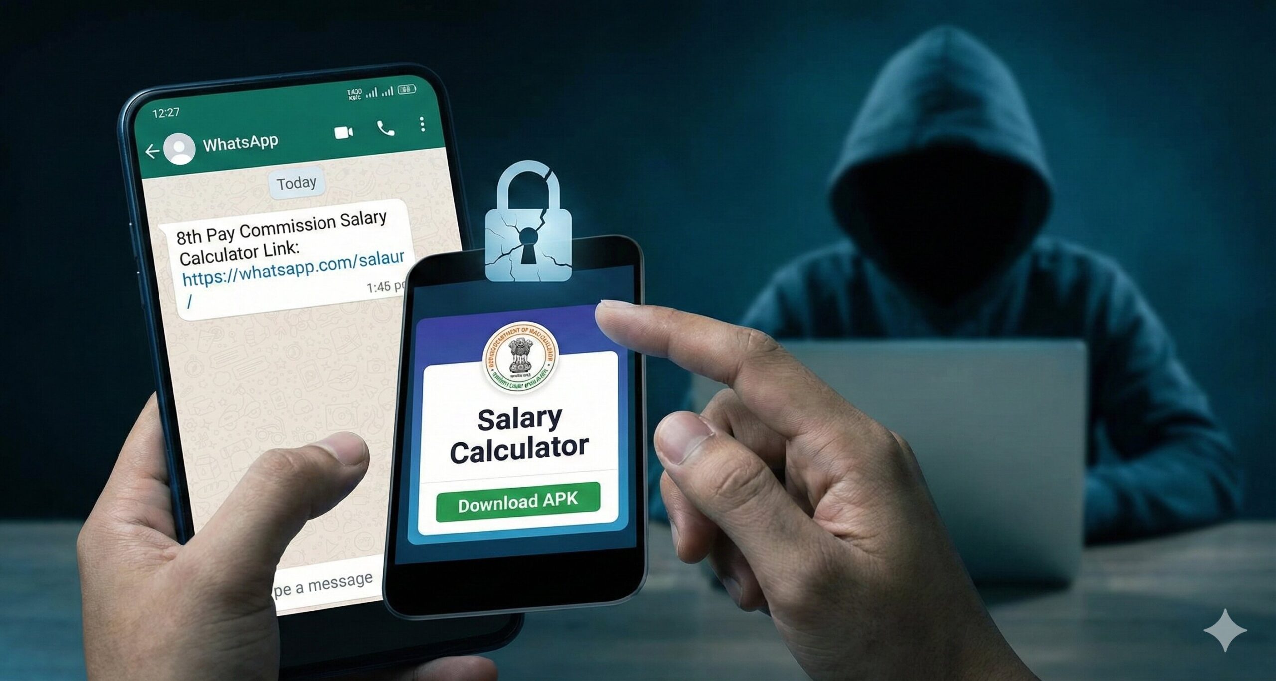 என்ன நடக்கிறது? (The Scam) வாட்ஸ்அப் குழுக்களில் “8th Pay Commission Salary Calculator” என்ற பெயரில் ஒரு APK ஃபைல் (Android Package Kit) வேகமாகப் பரவி வருகிறது.