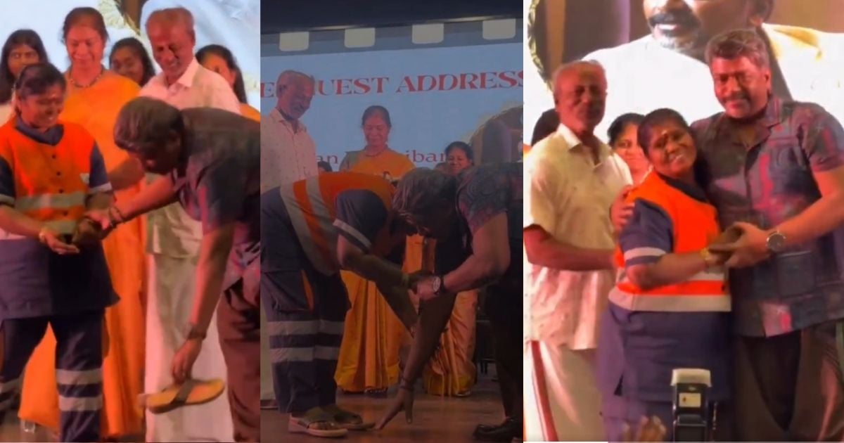 தூய்மைப் பணியாளர் பத்மாவின் பாதம் தொட்டு வணங்கிய நடிகர் பார்த்திபன் வீடியோ சமூக வலைதளங்களில் வைரலாகி வருகிறது.