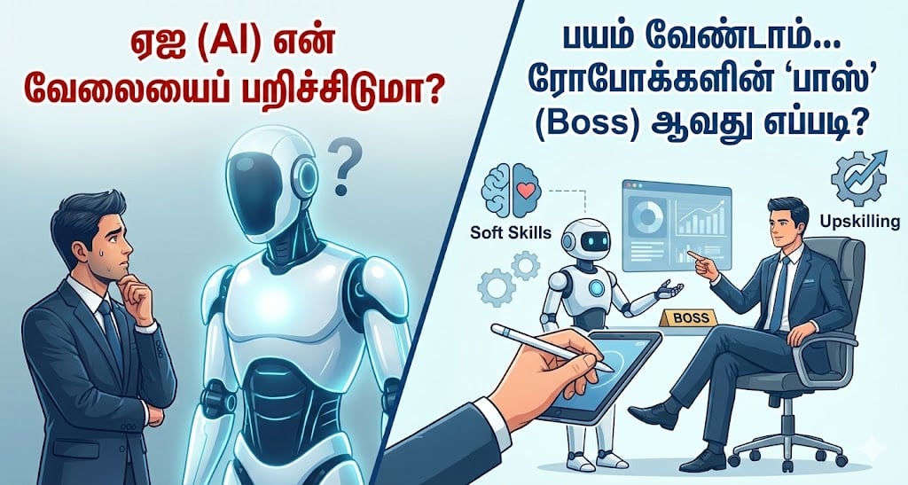 முடிவு: கால்குலேட்டர் வந்தபோது கணக்காளர்கள் வேலை போகும் என்று பயந்தார்கள். ஆனால், அது அவர்களின் வேலையை எளிதாக்கியது. அதேபோலத்தான் ஏஐ-யும். அது உங்களுக்குப் போட்டியாளர் அல்ல; அது உங்கள் உதவியாளர் (Co-pilot).