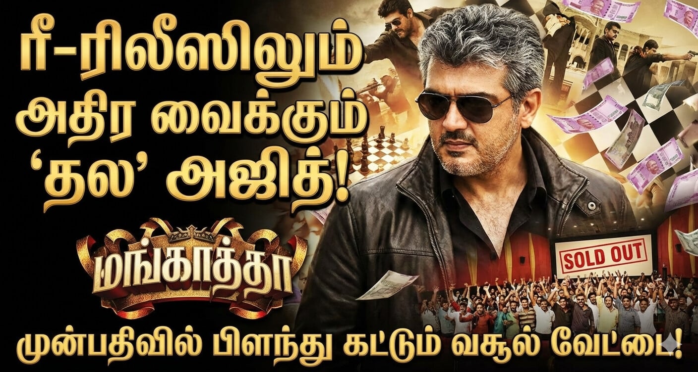 முன்பதிவில் மரண மாஸ் வேட்டை! ஜனவரி 23-ஆம் தேதி (வியாழக்கிழமை) திரையரங்குகளில் மீண்டும் வெளியாகவுள்ள ‘மங்காத்தா’ படத்திற்கான முன்பதிவு தற்போது தொடங்கியுள்ளது. படம் வெளியாவதற்கு இன்னும் சில நாட்களே உள்ள நிலையில், இதுவரை நடந்துள்ள முன்பதிவிலேயே சுமார் 60 லட்சம் ரூபாய்க்கும் மேல் வசூலித்து ரீ-ரிலீஸ் சாதனைகளைத் தகர்த்து வருகிறது. விநாயக் மகாதேவனின் ‘ஆட்டம்’ மீண்டும் ஆரம்பமாகிவிட்டதாக ரசிகர்கள் சோஷியல் மீடியாவை அதிரவிட்டு வருகின்றனர்.
