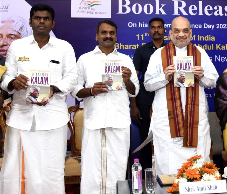 இந்த நிகழ்ச்சியில் அமித்ஷா பேசியபோது, “கல்விக்காக தனது வாழ்நாள் முழுவதையும் அர்ப்பணித்தவர் அப்துல் கலாம். அவரது முகத்தில் எப்போதும் புன்சிரிப்பு இருக்கும். அந்த புன்சிரிப்பானது நமது இந்தியாவின் வளமையான பாரதத்திற்கு ஒளி ஊட்டுவதாகவும் வேகம் ஊட்டுவதாகவும் அமைந்திருந்தது. அப்துல் கலாம் இந்தியா 2020 என்ற புத்தகத்தை எழுதியிருந்தார்.