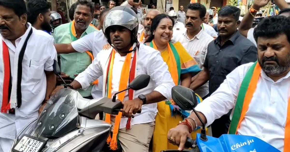தமிழகத்தில் சட்டமன்றத் தேர்தலுக்கான பிரச்சாரம் இன்று (ஏப்ரல் 21) மாலையுடன் நிறைவடைகிறது. கோவை வடக்கு சட்டமன்றத் தொகுதிக்கு உட்பட்ட சிவசக்தி காலனி பகுதியில், இன்று காலை பாஜகவினர் இருசக்கர வாகனப் பேரணியுடன் வாக்கு சேகரிப்பைத் தொடங்கினர். இப்பேரணியை பாஜக முன்னாள் மாநிலத் தலைவர் அண்ணாமலை தொடங்கி வைத்து, இருசக்கர வாகனத்தை ஓட்டினார். வேட்பாளர் வானதி சீனிவாசன் அவருடன் அமர்ந்து வாக்கு சேகரிப்பில் ஈடுபட்டார். இதில் நூற்றுக்கணக்கான பாஜக மற்றும் அதன் கூட்டணிக் கட்சித் தொண்டர்கள் கலந்து கொண்டனர்.