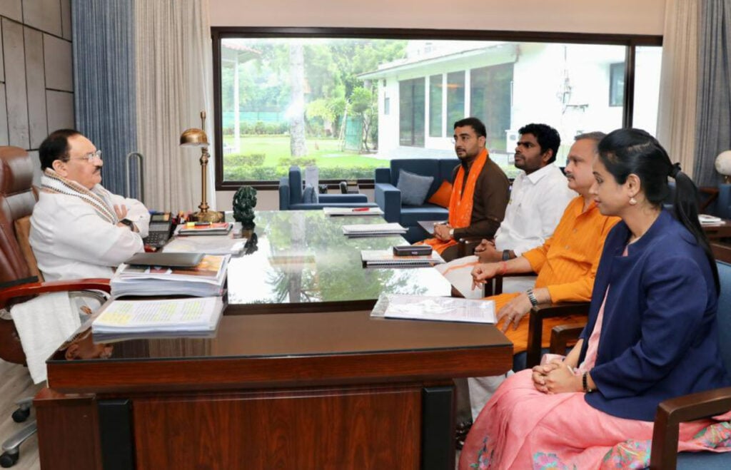 இந்த நால்வர் குழு பாஜக தேசிய தலைவர் ஜேபி நட்டாவை டெல்லியில் இன்று சந்தித்து அவரது வழிகாட்டுதல்கள் மற்றும் வாழ்த்துக்களை பெற்றுக்கொண்டனர்.
