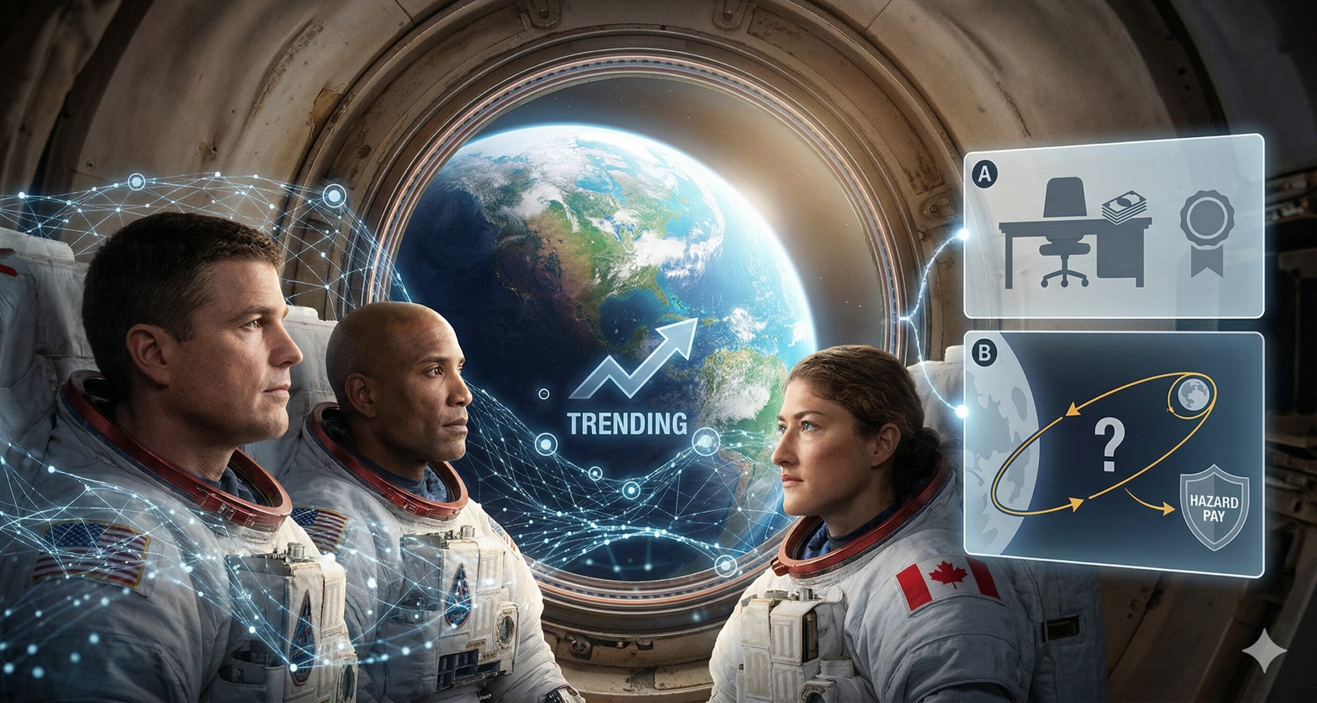 விண்வெளி வரலாற்றில் 50 ஆண்டுகளுக்குப் பிறகு மனிதர்களை நிலவுக்கு அருகில் அழைத்துச் சென்ற ஆர்ட்டெமிஸ் II (Artemis II) விண்கலம், தனது 10 நாள் பயணத்தை முடித்துக் கொண்டு தற்போது பூமியை நோக்கிப் பாய்ந்து வந்துகொண்டிருக்கிறது. ஆனால், இந்த வரலாற்றுச் சாதனையை விட, அந்த வீரர்களின் ஊதியம் குறித்த ஒரு தகவல் இப்போது இணையதளங்களில் விவாதப் புயலைக் கிளப்பியுள்ளது.