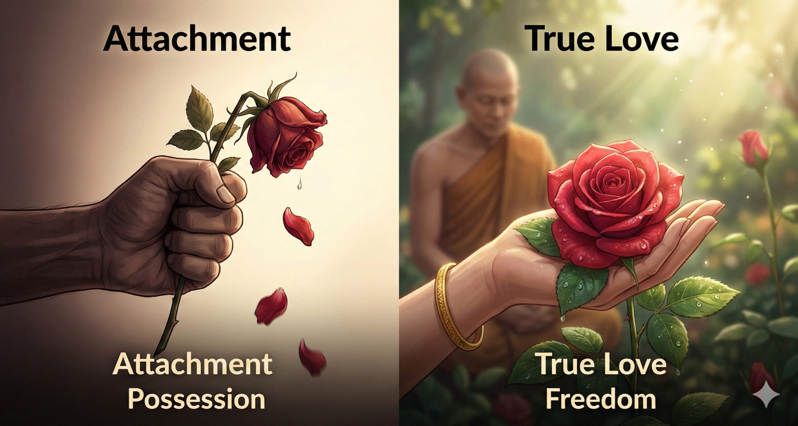 - பற்று (Attachment): “நீ இல்லாமல் என்னால் வாழ முடியாது,” என்று சொல்வது கேட்பதற்கு ரொமான்டிக்காக இருக்கலாம். ஆனால், பௌத்த தத்துவத்தின்படி இது ஆபத்தானது. இது ஒரு வகையான பிணைப்பு. இதில் பயம், பொறாமை மற்றும் பாதுகாப்பின்மை (Insecurity) அதிகம் இருக்கும். இது உங்களைச் சிறைப்படுத்தும்.