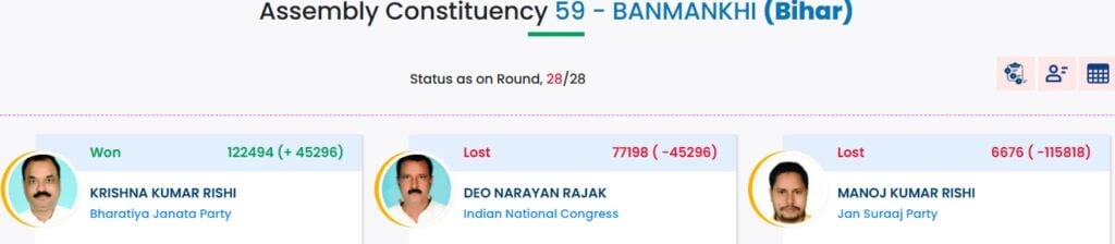 கிருஷ்ணகுமார் ரிஷி BanMankhi தொகுதியில் 1,22,494