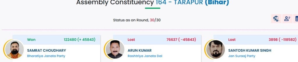 இதில் பாஜகவின் 4 வேட்பாளர்கள் வெவ்வேறு தொகுதிகளில் 1,22,400+ வாக்குகளை ஒரே மாதிரியாக பெற்றுள்ளது விவாதத்துக்குரியதாகி இருக்கிறது.