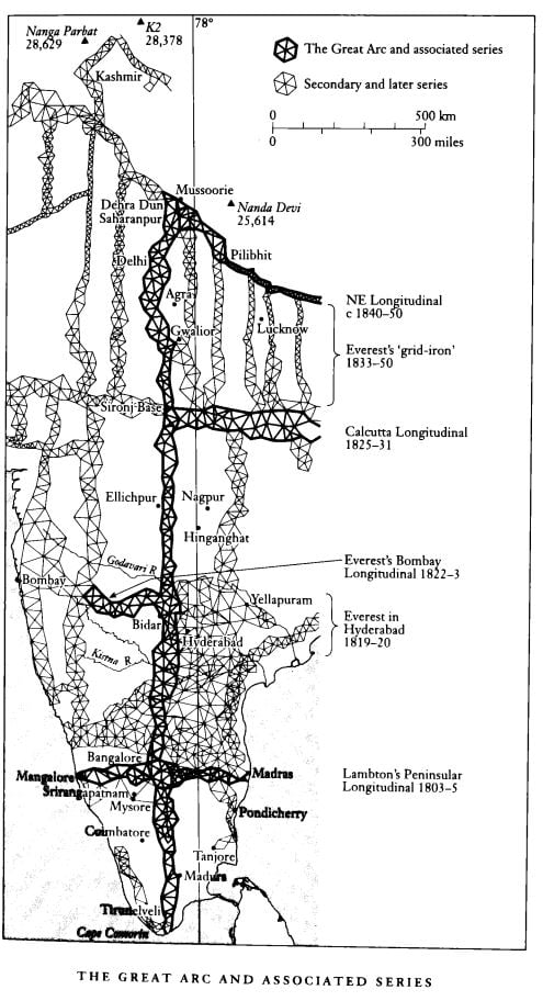 மாறாக இந்தத் தூண் ஆங்கிலேயர்கள் நிலவரைபடங்களை தயாரிக்க நிலங்களை அளவிடும் பொருட்டு நட்டுவைத்த தூண் என்று ஆய்வாளர்கள் கூறுகிறார்கள். ஆங்கிலேய அதிகாரி வில்லியம் லாம்ப்டன் (1753-1823) என்பவரால் 1802-ஆம் ஆண்டு துவங்கப்பட்ட Great Trigonometrical Survey என்ற பிரம்மாண்டமான வரைபட த்திட்டம் பல பத்தாண்டுகள் தொடர்ந்தது. அவருக்குப் பின் அதனைத் தொடர்ந்த ஜியார்ஜ் எவரெஸ்ட் (1790-1866) என்ற அதிகாரியின் பெயரைத்தான் இமயமலைச் சிகரத்திற்கு பின்னாளில் அவரை அடியொற்றி பணியைத் தொடர்ந்த ராதாநாத் சிக்தர் என்ற இந்தியர் வைத்தார்.