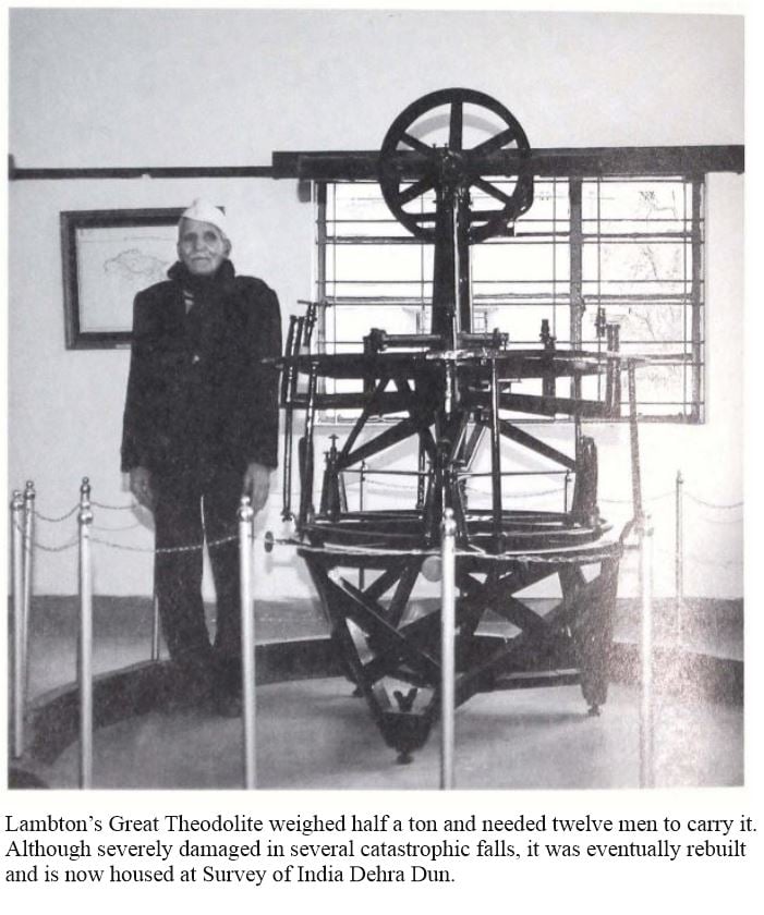 இந்த ஏற்றக்கோண கணக்கீடுகள் மூலம் நிலத்தை அளந்து வரைபடம் தயாரிப்பது மட்டுமன்றி, பூமியின் வடிவம் முற்றிலும் கோளமானதா அல்லது நீள் கோளமானதா என்பதையும் அறிய விரும்பினார் லாம்ப்டன். அதற்கு உதவிய முக்கியமான கருவிதான் தியோடலைட் என்ற கருவியாகும். அதனால் அதற்கு Great Arc Meridional Survey என்றும் பெயர்.