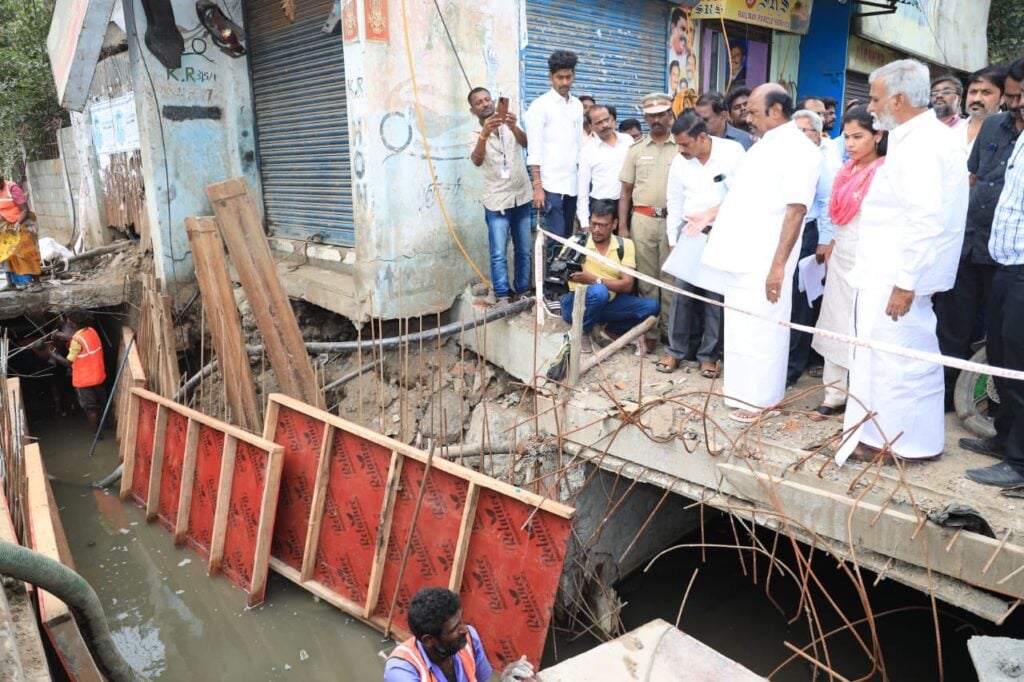 சென்னை துறைமுகம் மற்றும் கொளத்தூர் சட்டமன்ற தொகுதிகளுக்கு உட்பட்ட பகுதிகளில் நடைபெற்று வரும் மழைக்கால வெள்ளத் தடுப்பு பணிகளை பொதுப்பணித்துறை அமைச்சர் எ.வ.வேலு, இந்து சமய அறநிலைத்துறை அமைச்சர் சேகர்பாபு, சென்னை மேயர் பிரியா மற்றும் மாநகராட்சி ஆணையர் ககன்தீப் சிங் பேடி ஆகியோர் இன்று (அக்டோபர் 4 ) ஆய்வு செய்தனர்.
