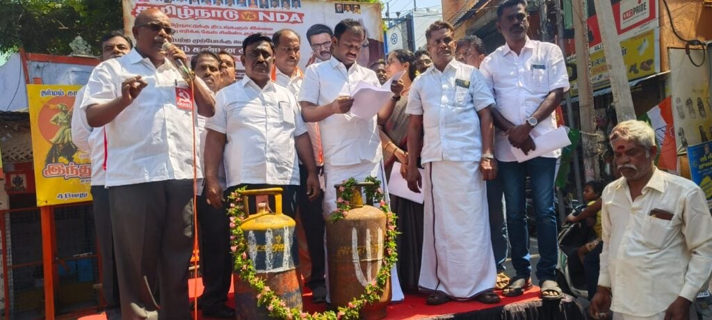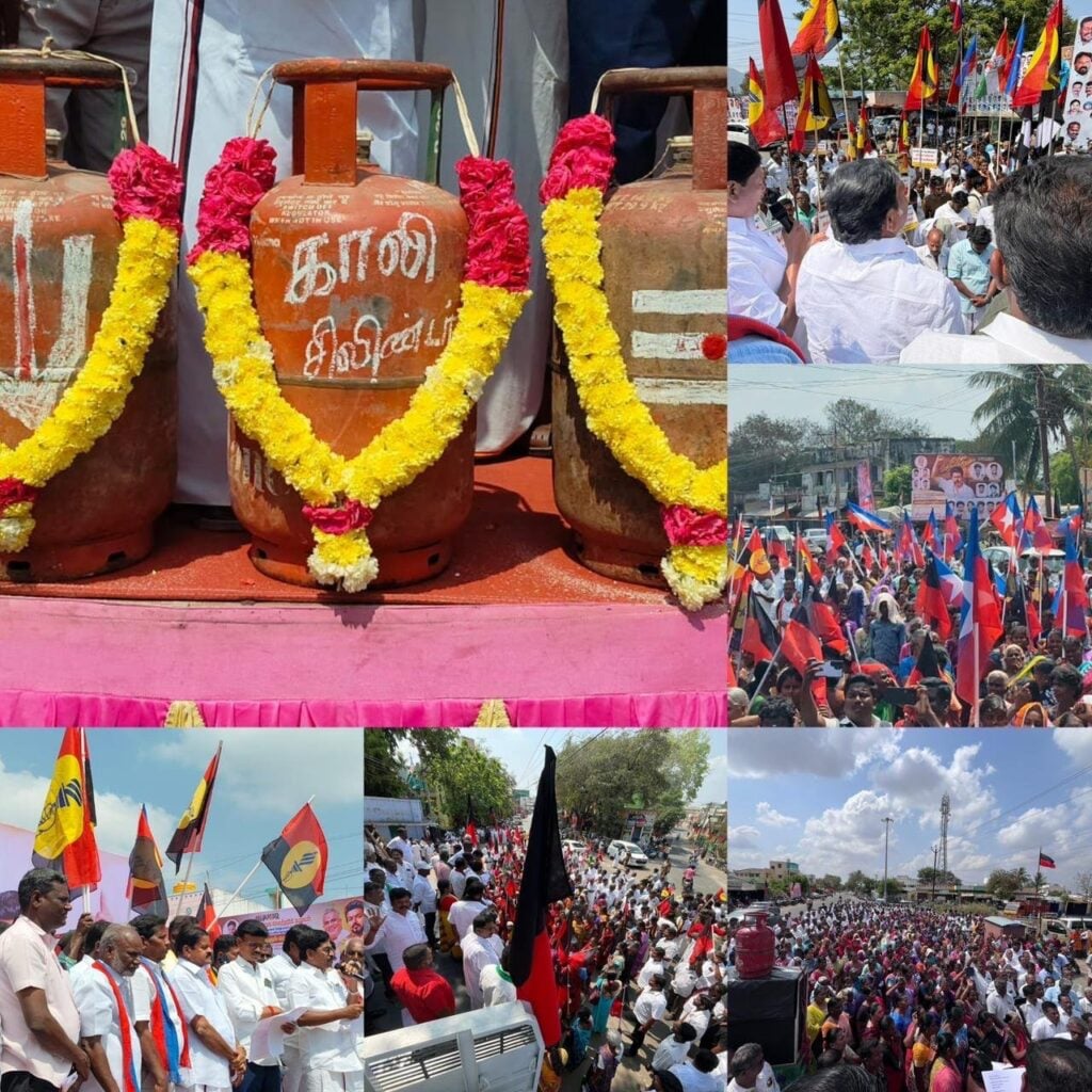 வளைகுடா நாடுகளில் நடைபெற்று வரும் போர் காரணமாக இந்தியா முழுவதும் கேஸ் சிலிண்டர் தட்டுப்பாடு நிலவுகிறது. குறிப்பாக தமிழகத்தில் பொதுமக்கள் கடுமையாக பாதிக்கப்பட்டு வருகின்றனர். இந்த விவகாரத்தில் நடவடிக்கை எடுக்காத ஒன்றிய பாஜக அரசை கண்டித்து, திமுக தலைமையிலான மதச்சார்பற்ற முற்போக்கு கூட்டணி சார்பில் தமிழ்நாடு முழுவதும் கண்டன ஆர்ப்பாட்டங்கள் நடைபெற்று வருகின்றது.