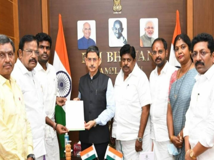அண்ணாமலையுடன் தமிழக பாஜக பொதுச் செயலாளர் ஏ.பி.முருகானந்தம், துணைத் தலைவர்கள் வி.பி. துரைசாமி, கே.பி. ராமலிங்கம் உள்ளிட்டோர் ஆளுநரை சந்தித்தனர்.