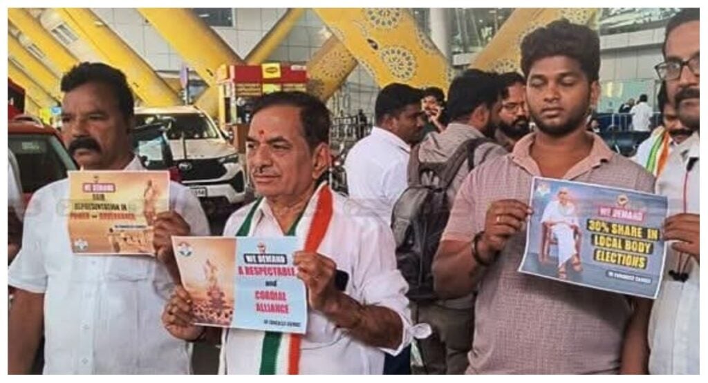 காங்கிரஸ் கட்சியின் அமைப்பு பொதுச்செயலாளர் கே.சி. வேணுகோபாலை தமிழக காங்கிரஸ் தலைவர் செல்வப்பெருந்தகை உள்ளிட்ட காங்கிரஸ் நிர்வாகிகள் சென்னை விமான நிலையத்தில் வரவேற்றனர். அப்போது காங்கிரஸ் கட்சியினர் ‘ஆட்சியில் பங்கு’ கோரி பதாகைகளை தூக்கி பிடித்ததால் பரபரப்பு ஏற்பட்டது.