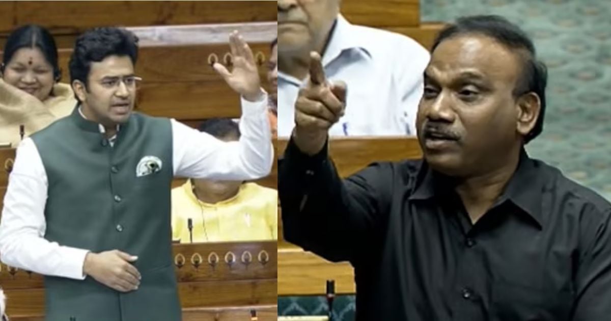விவாதத்தின் போது கர்நாடக பாஜக எம்பி தேஜஸ்வி சூர்யா பேசுகையில்,”உங்களைப் போலவே நானும் தென்னிந்தியாவிலிருந்து வந்த ஒரு இந்தியன் தான். நம்மிடையே உள்ள ஒரே வித்தியாசம் என்னவென்றால், திமுக பின்பற்றும் அந்தப் பிரிவினைவாத மொழியை நான் பேசுவதில்லை. காஷ்மீர் முதல் கன்னியாகுமரி வரை இந்த நாடு ஒன்று என்று நான் நம்புகிறேன்.” என்று தெரிவித்தார்.