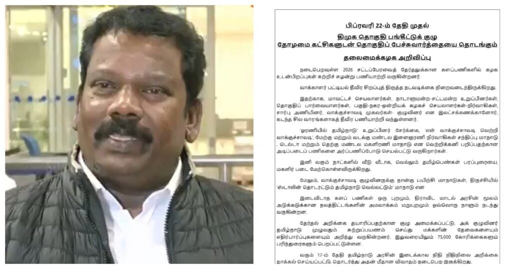 ஆனா, அன்னைக்கு நைட்டே, பிப்ரவரி 22-ந் தேதி முதல் தொகுதி பங்கீட்டு பேச்சுவார்த்தை நடத்தப்படும்னு திமுக தலைமையும் அறிவிச்சிருச்சு..