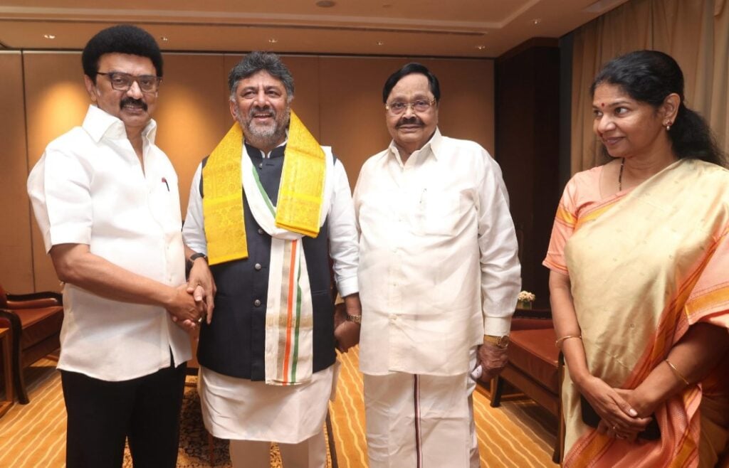 நாடாளுமன்ற தொகுதி மறுவரையறைக்கு எதிரான கூட்டு நடவடிக்கை குழு கூட்டம் முதல்வர் ஸ்டாலின் தலைமையில் சென்னையில் இன்று (மார்ச் 22) நடைபெற்றது. Shivakumar says Delimitation number