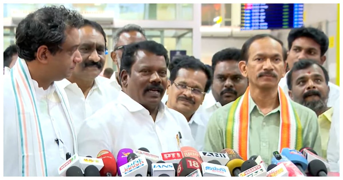 இதனையடுத்து சென்னை விமான நிலையத்தில் கிரிஷ் சோடங்கர், நிவேதித் ஆல்வா, ராஜேஷ்குமார் ஆகியோருடன் தமிழக காங்கிரஸ் கமிட்டித் தலைவர் செல்வப் பெருந்தகை செய்தியாளர்களை சந்தித்தார். அப்போது, திமுகவுடனான பேச்சுவார்த்தையில் இழுபறி எதுவும் இல்லை; காங்கிரச் மேலிடத்தின் அறிவிப்புக்காக காத்திருக்கிறோம்” என்றார் செல்வப்பெருந்தகை.