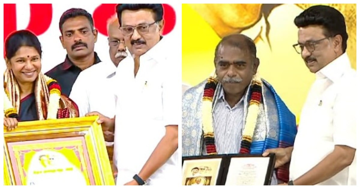 இந்த விருதுகளை திமுக தலைவரும் முதல்வருமான மு.க.ஸ்டாலின் வழங்கி சிறப்பித்தார்.