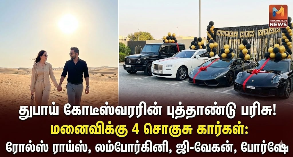 அப்படி என்ன பரிசு? துபாயைச் சேர்ந்த கோடீஸ்வரர் ஒருவர், தனது மனைவிக்கு புத்தாண்டை முன்னிட்டு ஒன்றல்ல, இரண்டல்ல… நான்கு அதிநவீன சொகுசு கார்களைப் பரிசாக அளித்துள்ளார். அதுவும் சாதாரண கார்கள் அல்ல; கார் பிரியர்களின் கனவு வாகனங்களான: