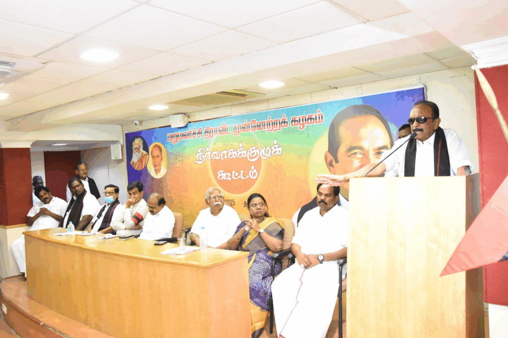அப்போது பொதுச் செயலாளர் வைகோ கூட்டத்தை அமைதிப்படுத்திவிட்டு பேசத் தொடங்கினார்.