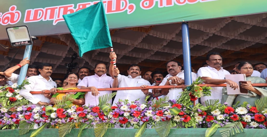 நாமக்கல் மாவட்டம் சாலப்பாளையம் கிராமத்தில் இன்று (ஜனவரி 27) ஜல்லிக்கட்டு போட்டி நடைபெற்றது. இதனை அதிமுக பொதுச்செயலாளர் எடப்பாடி பழனிசாமி கொடியசைத்து தொடங்கி வைத்தார்.