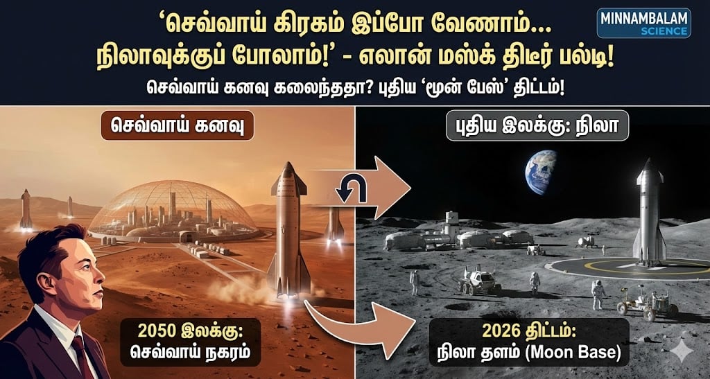 புதிய திட்டம் என்ன? – ‘மூன் பேஸ்’ (Moon Base): “செவ்வாய்க்குச் செல்வதற்கு முன், நிலாவில் ஒரு நிரந்தரத் தளத்தை (Permanent Base) அமைப்பதே சிறந்தது,” என்று மஸ்க் முடிவு செய்துள்ளார்.