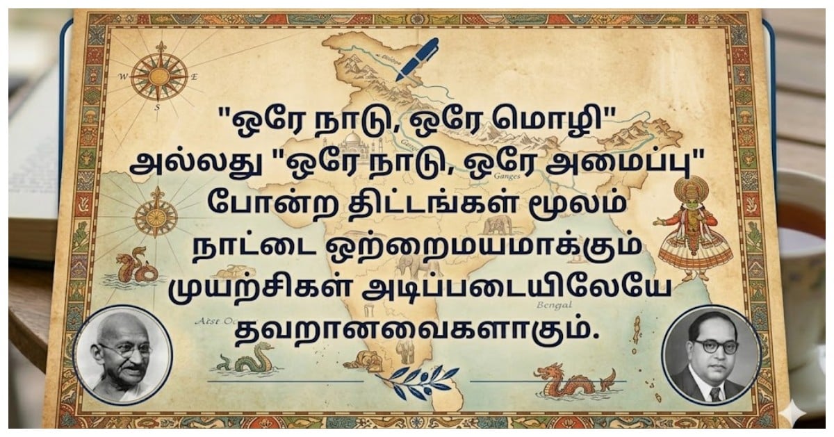 மேடிசனின் இந்த நுண்ணறிவை இந்தியா ஒரு நாகரிகத் தளத்திலேயே (civilisational scale) மெய்ப்பித்துக் காட்டுகிறது. இங்குள்ள மொழி, சாதி, மதம் மற்றும் வட்டாரம் சார்ந்த அசாதாரணப் பன்முகத்தன்மை, எந்தவொரு தனித்த உட்பிரிவும் ஒட்டுமொத்த “மக்களையும்” பிரதிநிதித்துவப்படுத்துவதாகக் கூறுவதைச் சாத்தியமற்றதாக்குகிறது. மையவாதக் கண்ணோட்டத்திற்கு (centralist perspective) இது ஒருவித ஒழுங்கீனமாகவோ சிதறுண்ட நிலையாகவோ தோன்றலாம். ஆனால் உண்மையில், புரட்சிகரமான முறிவுகள் மற்றும் பெரும்பான்மைவாத ஆதிக்கம் (majoritarian domination) ஆகிய இரண்டையுமே தடுப்பதற்கான ஒரு கட்டமைப்புரீதியான பாதுகாப்பாகவே இது இயங்குகிறது.இந்தக் காரணத்தினால்தான், “ஒரே நாடு, ஒரே மொழி” அல்லது “ஒரே நாடு, ஒரே அமைப்பு” போன்ற திட்டங்கள் மூலம் நாட்டை ஒற்றைமயமாக்கும் முயற்சிகள் அடிப்படையிலேயே தவறானவைகளாகும். கட்டாய மொழி ஒருமுகத்தன்மை (compulsory linguistic uniformity), கட்டாயப்படுத்தப்படும் சாதி அல்லது மத மறுப்புத் திருமணங்கள், கட்டாய மதமாற்றங்கள் அல்லது இது போன்ற தலையீடுகள் மூலமாக – இந்தியாவின் பன்மைத்துவ அடையாளங்களை (plural identities) செயற்கையாகவோ அல்லது வற்புறுத்தியோ அழித்துவிட முடியாது. அப்படிப்பட்ட ஒற்றைமயமாக்கல் சாத்தியமாக இருந்தாலும்கூட, அது நாட்டின் நீண்டகால ஒற்றுமைக்கு நேர்மாறான விளைவுகளைத் தருவதாகவும் ஆபத்தானதாகவுமே முடியக்கூடும். இந்தியா பன்முகத்தன்மை கொண்டதாக இருப்பதால்தான் அது இன்றும் ஒற்றுமையுடன் நிலைத்திருக்கிறது – மேலும் அதன் கூட்டாட்சிக் கட்டமைப்பு, எத்துணை குறைபாடுகள் இருந்தபோதிலும், அந்தப் பன்முகத்தன்மையை மறுப்பதற்குப் பதிலாக அதனை அரவணைத்து வாழக் கற்றுக்கொண்டதாலும்தான். (தொடரும்)