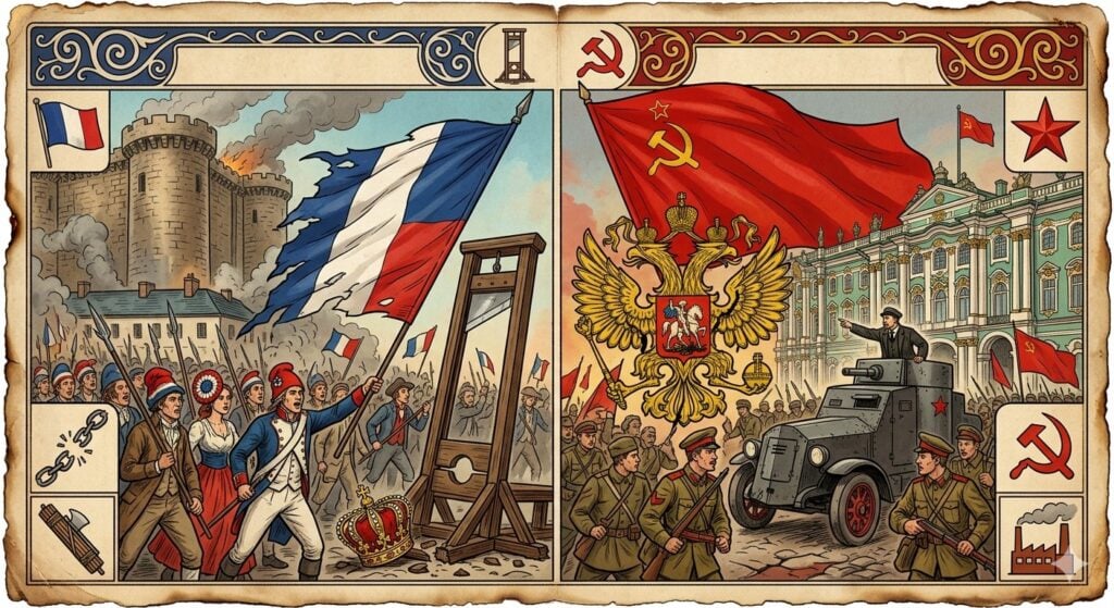 பிரெஞ்சுப் புரட்சி (1789) மற்றும் ரஷ்யப் புரட்சி (1917) போன்ற செவ்வியல் “மக்கள் புரட்சிகள்” வெறுமனே ஆட்சி மாற்றங்களாக மட்டுமின்றி, முழுமையான புரட்சிகளாக அமைந்தன. மையப்படுத்தப்பட்ட ஒரு தேசிய-அரசுக்கு எதிராக ஒன்றிணைந்த “மக்கள்” கிளர்ந்தெழுந்து, தீர்க்கமான ஒரு முறிவின் மூலம் சமூகத்தை மறுநிர்மாணம் செய்ய முயன்றனர். அரசியல் மோதல்கள் முற்றிலும் இருமுனை கொண்டவையாக மாறின – முடியாட்சிக்கு எதிராக ‘மூன்றாம் எஸ்டேட்’ (Third Estate), முதலாளித்துவ வர்க்கத்திற்கு எதிராக உழைக்கும் வர்க்கம் (proletariat) என எதிரெதிர் தரப்புகளாக உருவெடுத்தன. இதனால், ஆதிக்கம் செலுத்திய அந்த ஒற்றைப் பிளவுக்கோட்டை (single dominant fault line) மையமாக வைத்து மக்களை மிக எளிதாக அணிதிரட்ட முடிந்தது. ஹன்னா அரெண்ட் (Hannah Arendt) 1963 ஆம் ஆண்டில் வெளியிட்ட ‘புரட்சி குறித்து’ (On Revolution) என்ற நூலில் குறிப்பிட்டதைப்போல, இத்தகைய புரட்சிகள் மரபுவழியாக வந்த சமூக மற்றும் நிறுவன அமைப்பை அழிப்பதன் மூலம் “ஒரு புதிய தொடக்கத்தின் மீது சுதந்திரத்தை நிறுவ” முற்பட்டன.
