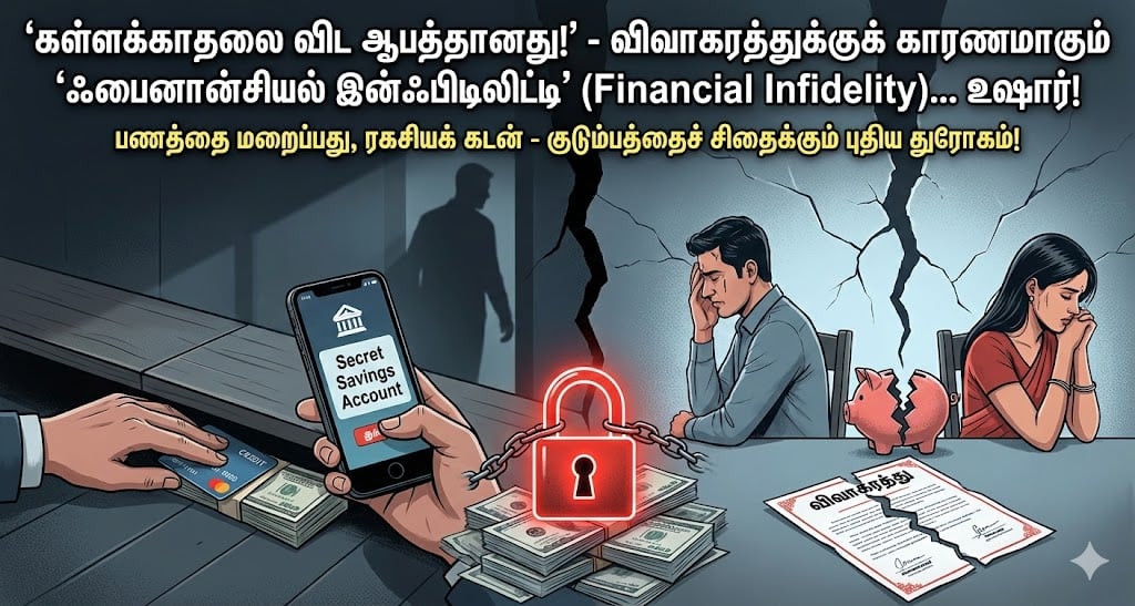 துரோகம் என்ற வார்த்தையைக் கேட்டாலே, நம் நினைவுக்கு வருவது தவறான பாலியல் உறவு அல்லது கள்ளக்காதல் மட்டும்தான். ஆனால், அதைவிட அமைதியாக, அதே சமயம் மிக மோசமாக ஒரு குடும்பத்தைச் சிதைக்கும் வேறொரு துரோகம் இருக்கிறது. அதுதான் ‘நிதி துரோகம்’ (Financial Infidelity).