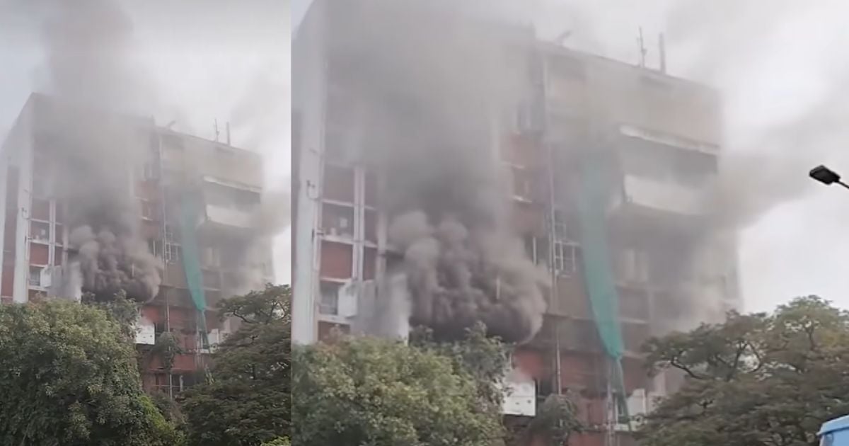 கட்டிடத்தில் இருந்து கரும்புகை வெளியேறி வருவதால் தீயை அணைப்பது சவாலாக உள்ளது.