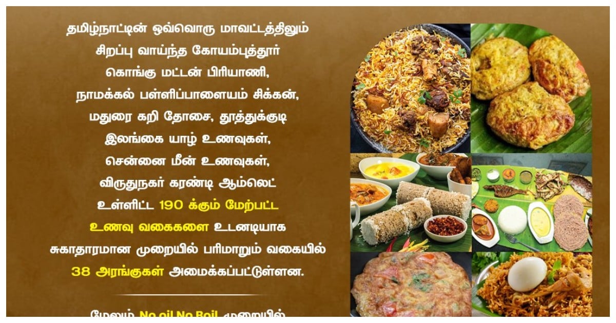 மதுரை கறி தோசை, விருதுநகர் கரண்டி ஆம்லெட், பொறிச்ச புரோட்டா, தூத்துக்குடி, இலங்கை யாழ் உணவுகள் மற்றும் சென்னையின் விதவிதமான மீன் உணவுகள் உள்ளிட்டவை இடம் பெறுகின்றன.