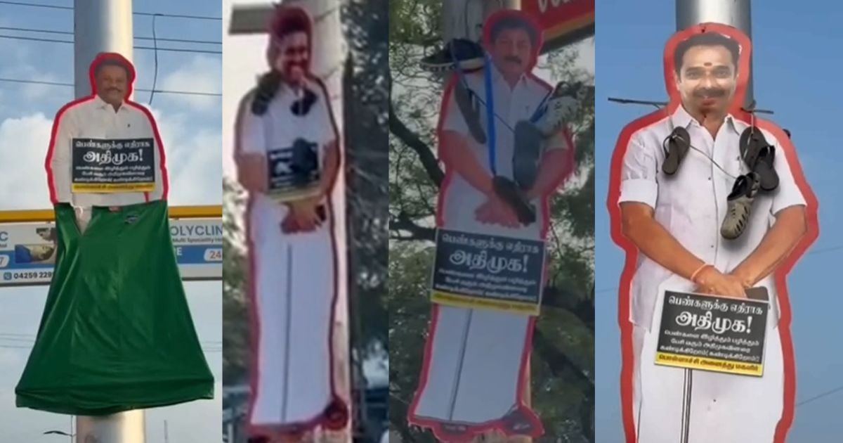 இந்நிலையில், இன்று காலை பொள்ளாச்சி பேருந்து நிலையம் மற்றும் உடுமலை சாலைப் பகுதிகளில் உள்ள போக்குவரத்துச் சிக்னல்களில், அடையாளம் தெரியாத நபர்கள் சிலர் முன்னாள் அமைச்சர்கள் சி.வி. சண்முகம், திண்டுக்கல் சீனிவாசன், எம்.ஆர். விஜயபாஸ்கர் மற்றும் சட்டமன்ற உறுப்பினர் அம்மன் அர்ஜுனன் ஆகியோரின் உருவ பொம்மைகளைத் தொங்கவிட்டிருந்தனர். அந்த உருவ பொம்மைகளுக்குச் செருப்பு மாலை அணிவிக்கப்பட்டிருந்ததோடு, பாவாடையும் கட்டப்பட்டிருந்தது அங்கிருந்தவர்களிடையே அதிர்ச்சியை ஏற்படுத்தியது.