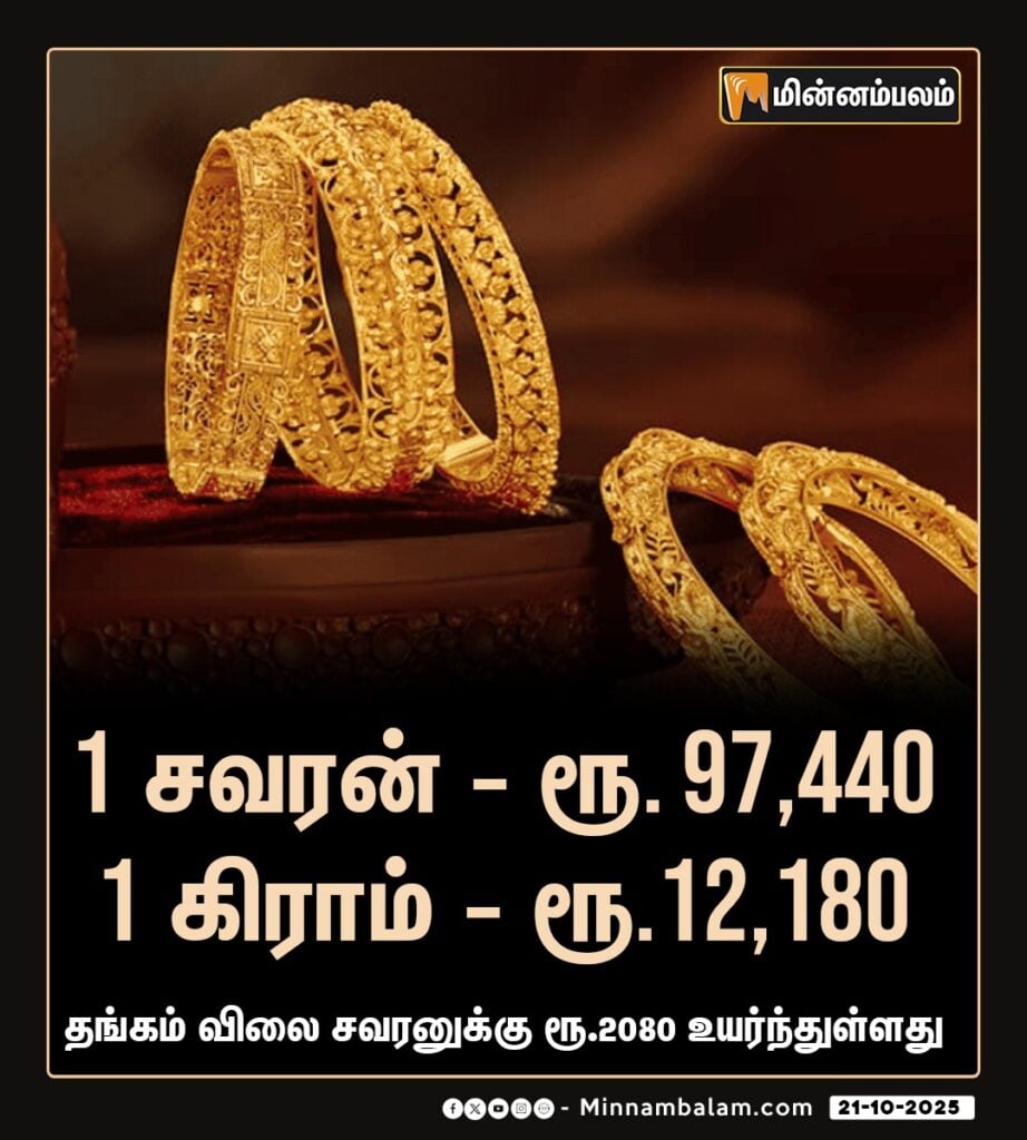 பண்டிகை கால தேவை முகூர்த்த காலம், சர்வதேச சந்தை நிலவரம், டாலருக்கு நிகரான இந்திய ரூபாய் மதிப்பு சரிவு உள்ளிட்ட பல காரணங்களில் தங்கம் மற்றும் வெள்ளியின் விலையில் மாற்றங்கள் ஏற்பட்டு வருகிறது. இந்நிலையில் இன்று (அக்டோபர் 21) ஒரு சவரன் ஆபரண தங்கம் ரூ.2,080 உயர்ந்து விற்பனை செய்யப்படுகிறது.