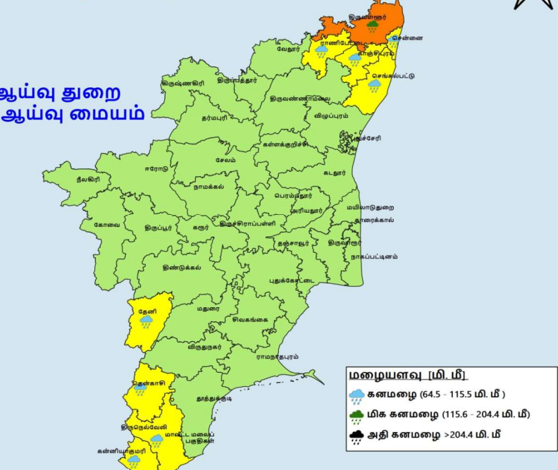 அதன்படி சென்னை, திருவள்ளூர் மற்றும் ராணிப்பேட்டை மாவட்டங்களில் நாளை பள்ளிகளுக்கு மட்டும் விடுமுறை அளிக்கப்பட்டுள்ளது.