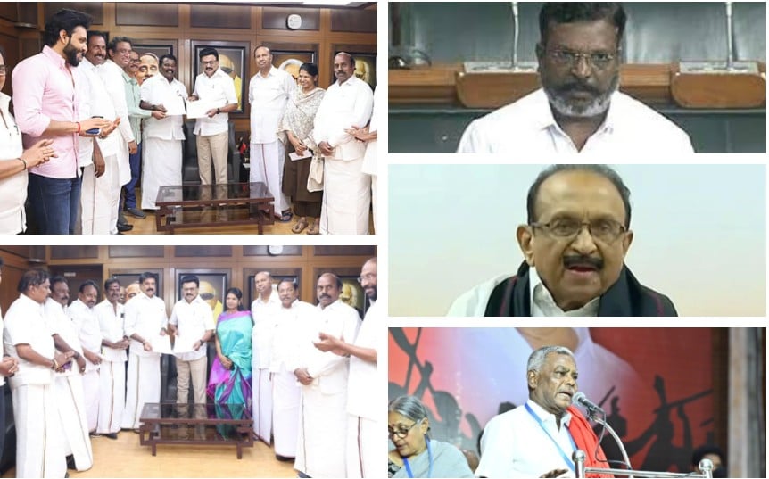 ஆம் ஆத்மி வசீகரன், மனித நேய ஜனநாயகக் கட்சி தமிமுன் அன்சாரி, எஸ்டிபிஐ முபாரக், கொங்குநாடு இளைஞர் பேரவை தனியரசு, புதிய திராவிட கழகம் ராஜ் கவுண்டர்.. இவங்களும் திமுக குழுவோட பேசிட்டு போயிருக்காங்க..