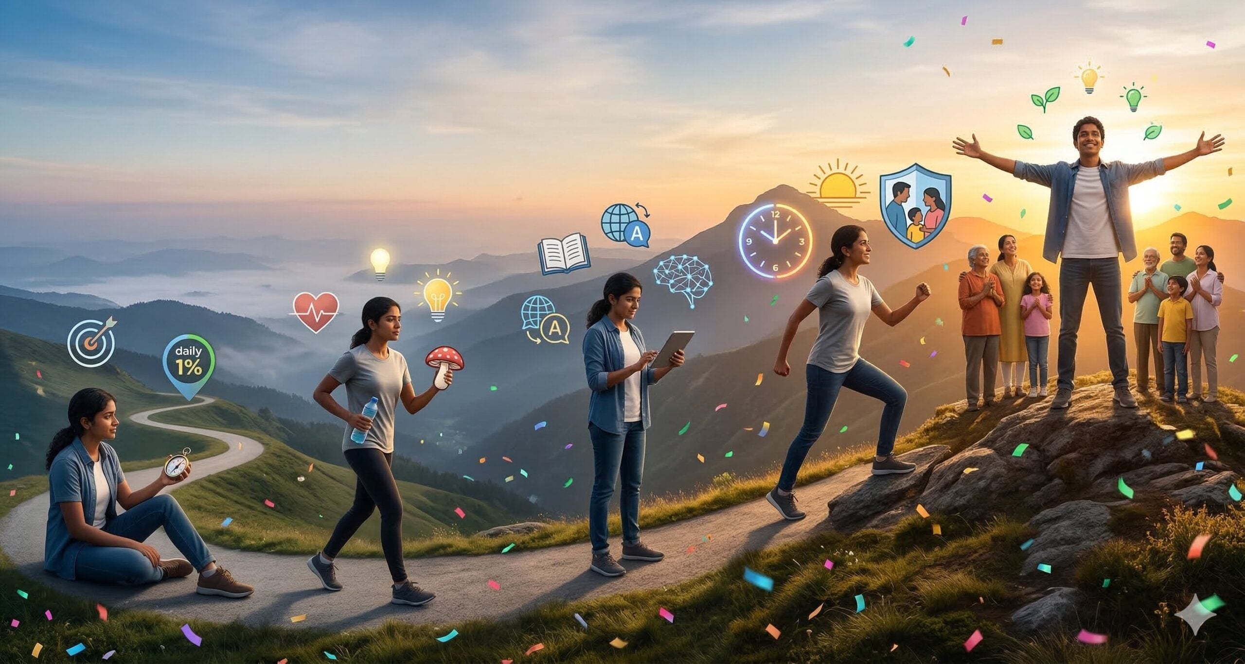 தெளிவான இலக்குகள் (Clear Goals) இல்லாமல் பயணம் செய்வது, திசையறியாத கப்பலைப் போன்றது. உங்கள் வாழ்க்கையில் நீங்கள் எதை அடைய விரும்புகிறீர்கள் என்பதைத் தீர்மானியுங்கள். அந்த இலக்கை அடைய நீங்கள் செய்ய வேண்டிய மாற்றங்களை இன்றே தொடங்குங்கள். ஒரு பெரிய மாற்றத்தை விட, தினமும் 1% உங்களை மேம்படுத்திக்கொள்வது நீண்ட கால அடிப்படையில் மிகப்பெரிய வெற்றியைத் தரும்.