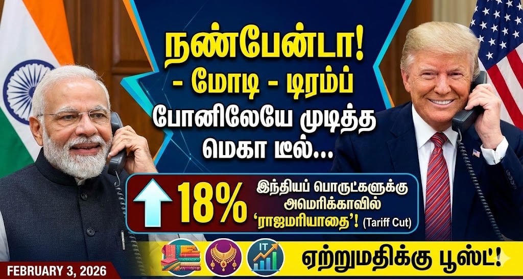 பிரதமர் நரேந்திர மோடியும், அமெரிக்க அதிபர் டொனால்ட் டிரம்பும் ஒரு போன் காலில் பேசியதன் விளைவாக, அமெரிக்காவில் விற்கப்படும் “மேட் இன் இந்தியா” (Made in India) பொருட்களுக்கான இறக்குமதி வரி (Tariff) அதிரடியாக 18% ஆகக் குறைக்கப்பட்டுள்ளது.
