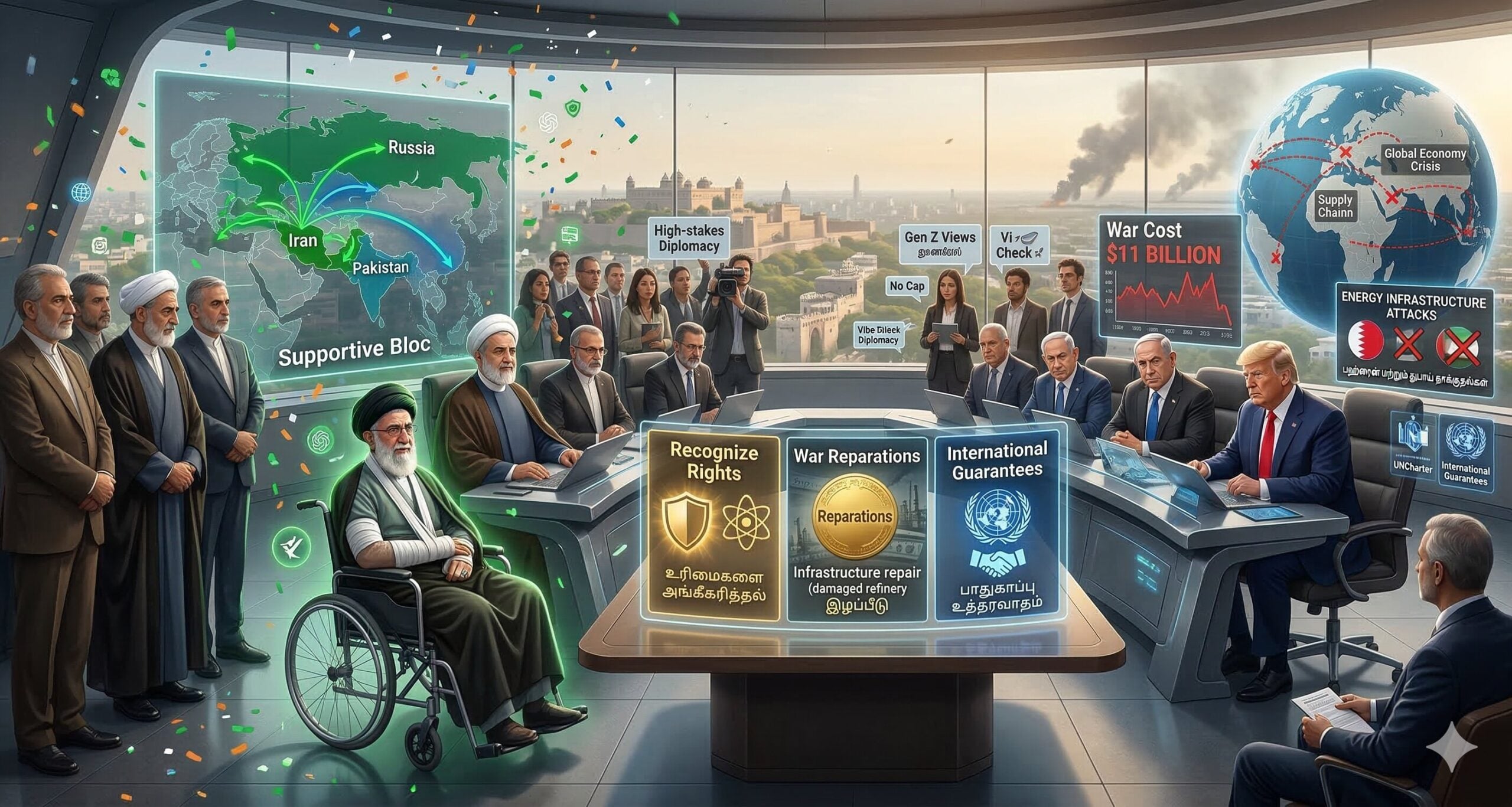 Gen Z இளைஞர்கள் சமூக வலைத்தளங்களில் இந்தச் சூழலை “High-stakes Diplomacy” என வர்ணித்து வருகின்றனர். ஒருபுறம் அமைதிப் பேச்சுவார்த்தைக்கான கதவுகள் திறந்திருப்பதாகத் தோன்றினாலும், மறுபுறம் தாக்குதல்கள் நின்றபாடில்லை. “No Cap”, இந்த நிபந்தனைகளை அமெரிக்கா அப்படியே ஏற்கும் வாய்ப்பு மிகக் குறைவு என்றாலும், பேச்சுவார்த்தைக்கு இது ஒரு தொடக்கப்புள்ளியாக அமையலாம்.