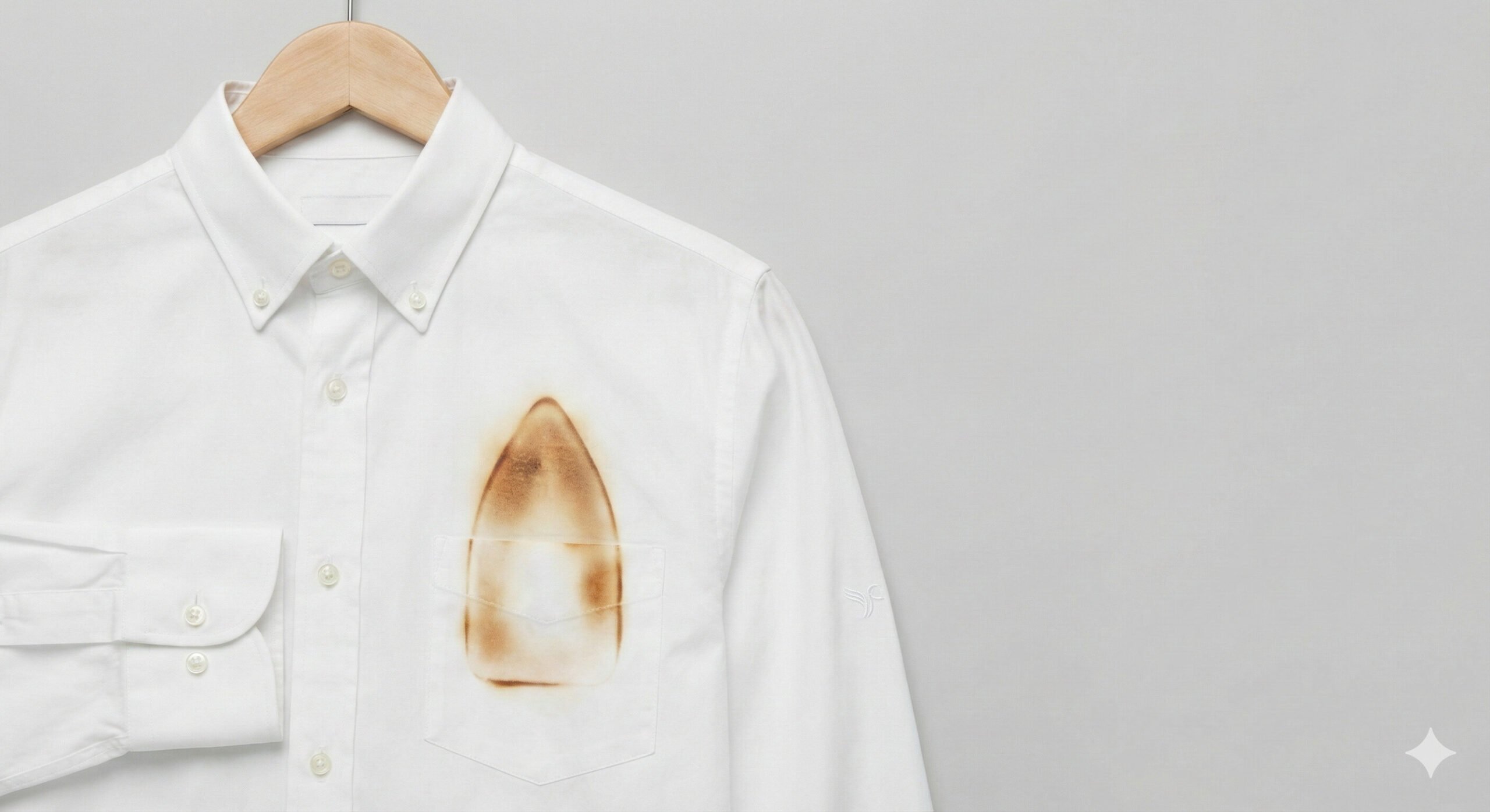 வெட்மென்ட்ஸ் (Vetements) என்ற புகழ்பெற்ற சுவிஸ்-பிரெஞ்சு ஆடம்பர பிராண்ட் தான் இந்த வினோத முயற்சியைக் கையில் எடுத்துள்ளது. இந்தப் புதிய ஆடைக்கு ‘வெள்ளை அயர்னிங் பர்ன் கிராஃபிக் ஷர்ட்’ (White Ironing Burn Graphic Shirt) என்று பெயரிடப்பட்டுள்ளது. பார்ப்பதற்கு ஒரு சாதாரண வெள்ளைச் சட்டையில், இஸ்திரி பெட்டியை (Iron Box) நீண்ட நேரம் அழுத்தி வைத்தால் ஏற்படக்கூடிய பழுப்பு நிறச் சுடுதழும்பு (Scorch Mark) போன்ற ஒரு அச்சு (Print) இதில் கொடுக்கப்பட்டுள்ளது. சட்டையின் இடது பக்கப் பைக்கு மேலே மிகத் துல்லியமாக இந்த டிசைன் அச்சிடப்பட்டுள்ளது.