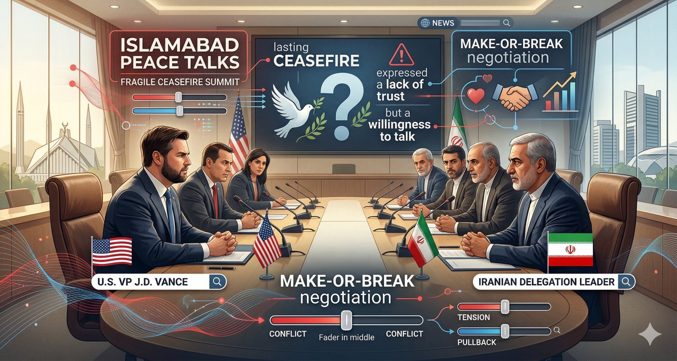 நிஜமாவே இன்னைக்கு உலகம் முழுக்க இருக்குற அத்தனை டிப்ளமேட்களும், அரசியல் ஆர்வலர்களும் தங்களோட பார்வையை பாகிஸ்தான் பக்கம் தான் வச்சிருக்காங்க. ஏன்னா, இஸ்லாமாபாத்ல அமெரிக்காவுக்கும் ஈரானுக்கும் நடுவுல ஒரு முக்கியமான ‘வாழ்வா சாவா’ (Ceasefire Summit) மீட்டிங் இப்போ நடந்துட்டு இருக்கு. கடந்த சில வாரங்களா மத்திய கிழக்கு நாடுகள்ல நிலவி வர்ற அந்தப் போர் பதற்றத்துக்கு ஒரு முற்றுப்புள்ளி வைக்கத்தான் இந்த அவசரக் கூட்டம்.