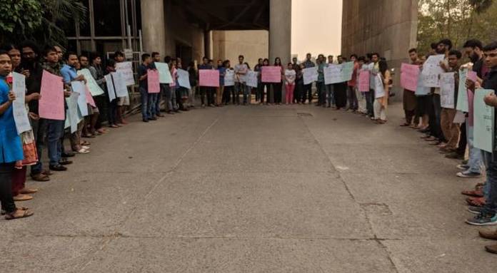 இலங்கையில் தொடரும் அரசியல் குழப்பங்கள் பற்றி டெல்லி (இந்தியா) இதுவரை தெளிவான எந்தக் கருத்தையும் தெரிவிக்காத நிலையில், டெல்லியில் இருக்கும் தெற்காசிய பல்கலைக்கழகத்தில் இலங்கை அதிபருக்கு எதிராக மாணவர்கள் மௌனப் போராட்டம் நடத்தியிருக்கிறார்கள்.
