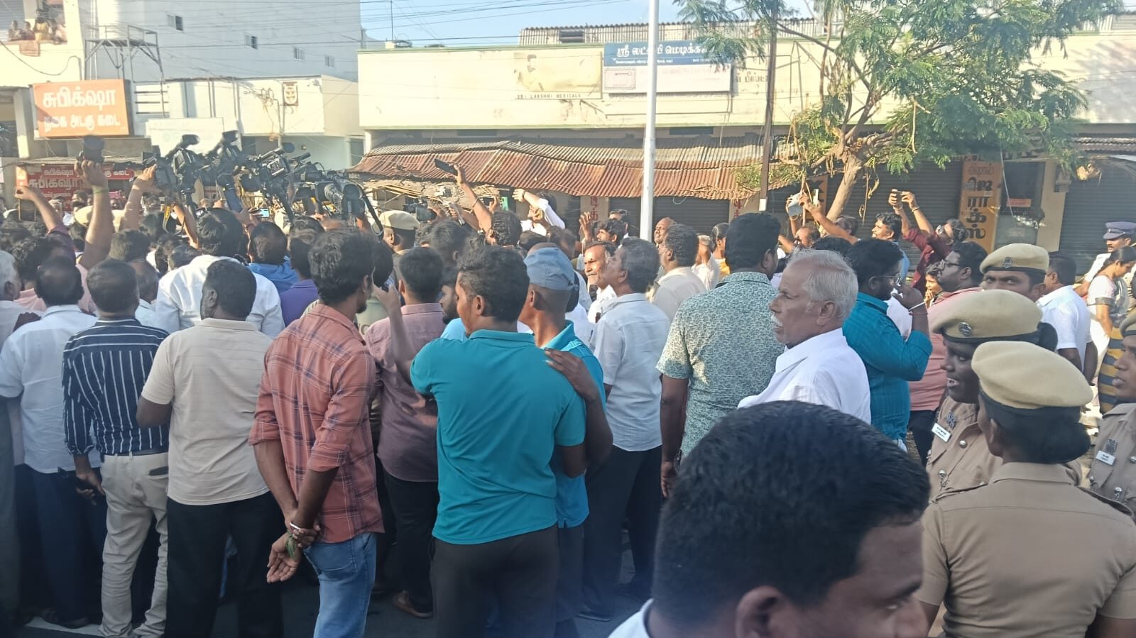 துயர சம்பவம் நடந்த வேலுச்சாமிபுரம் சாலையில் திமுக முன்னாள் அமைச்சர் செந்தில் பாலாஜியுடன் சென்று சில நிமிடங்கள் பார்வையிட்டார் கமல்ஹாசன் எம்.பி.